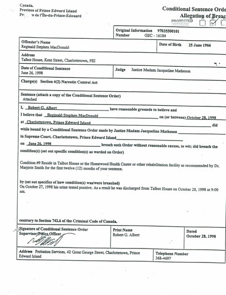 The prosecutor is, in my opinion, an arsehole. His position is that, I should never have gotten a conditional sentence in the first place, but since I did, he seems to harbor resentment towards me. If I was released his position is that I would then be in breach of the condition that I reside in Talbot House, so he would have me arrested again. If I were a lawyer, I would love to have a case like this; there are so many challenges involved. It’s almost like a game – reg. vs prosecutor. If he were to have me arrested while on a release granted by the court I think it would look petty and vindictive, which would strengthen my case.