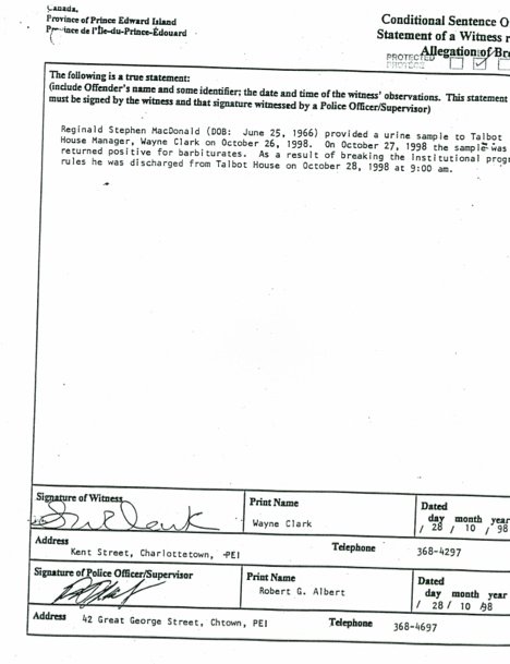 I talked to my mother, [Janine], and Steven on the phone tonight. They are not at all confident that I’ll be able to live on my own if I am released but I have no other option because I can’t go back to Talbot House. Souris is a possible option but I don’t know if I could handle that. I feel a need to regain my independence. Its’ been ten months now since this all began and I really wish it would end.