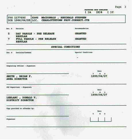 Another peaceful day alone in the unit. Well, Steven got back this evening, tomorrow for Tyler and Rueben they say. I was told that if I had been there when everything happened they would have taken me too, for suspicion. I guess my mother came at just the right time … my stomach pain is gone today. Nice to have a respite from that … I got a sunburn on my chest, stomach and legs too today. Hope it stays sunny for a few more days … the guards brought in some Moncton newspapers today – nice to read that for a change. I haven’t seen the Summerside paper today so I’ll have something to read tomorrow, most fortunate, yes …