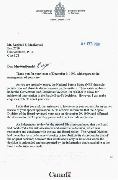 (Reg also received a response from the Provincial Government related to his complaint of Dec. 26, 1998, that inmates had to share and re-use disposable razors, which is an obvious health hazard)