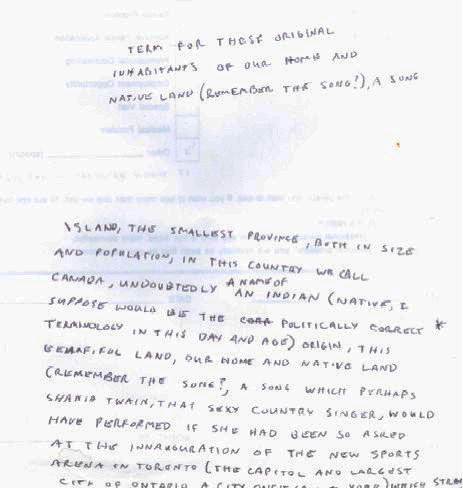 The end is finally in sight. Brian Smith was here today with a completed parole application which he is rushing to Moncton today. Time is short but there is a good possibility that I will be ok’ed for the program starting on Monday. If not then, then on the 31st. Either way, I’m on my way out. Brian has been pretty helpful and wrote a good report. All I can do now is hope for the best. Random notes from this period – may have been trying to write music: