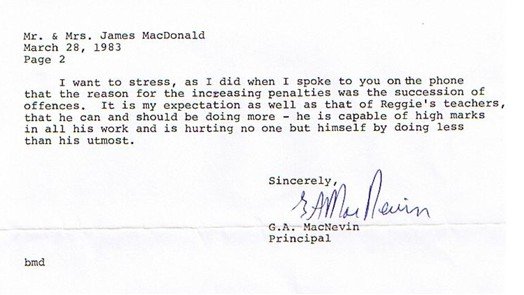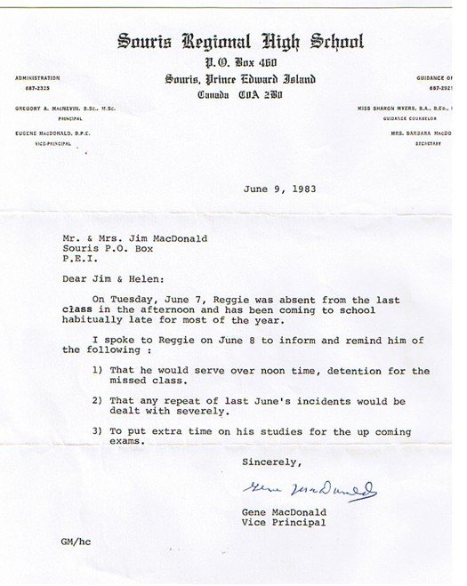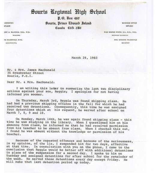 The list of things that Reg did in High School to torment his poor teachers and principal is legendary among his friends. When Reg attended class, he was probably aptly described as "disruptive". The declining poor grades that Reggie was having don’t do justice to the term “problem student”. There were a lot of stunts, but a few stood out, and are below.
